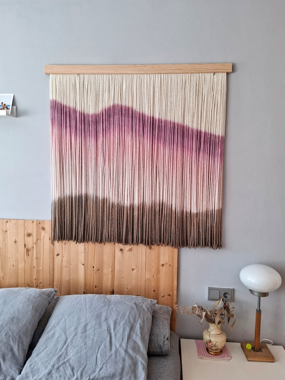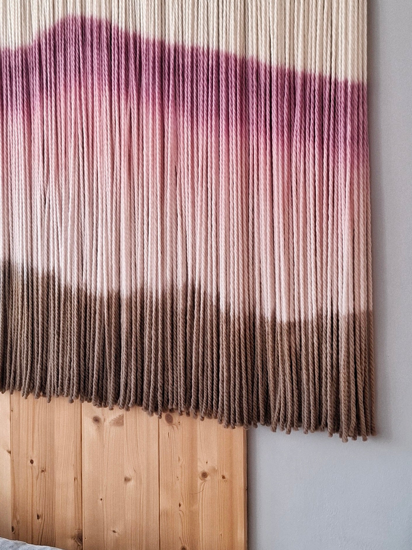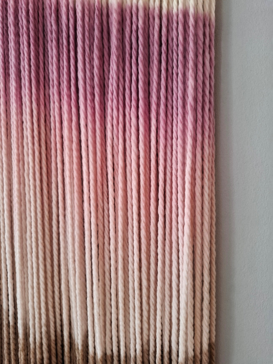 Tapiz de lana encabezado por un color frambuesa intenso, rosa magnolia en suave degradado y un toque final de marengo profundo. Una combinación moderna y sofisticada.